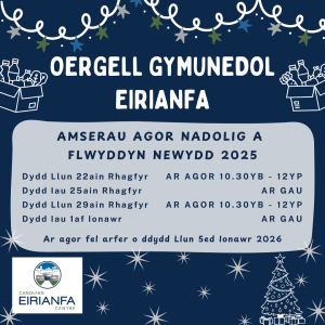 Here are the 2025 Christmas and New Year opening times for the Canolfan Eirianfa Centre: