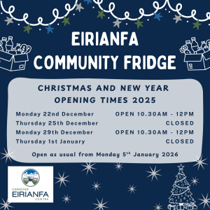 Please find our food hygiene rating here and if you would like to keep up to date with the latest news from the Eirianfa Community Fridge you can join their Facebook group or follow Canolfan Eirianfa Centre on Facebook.